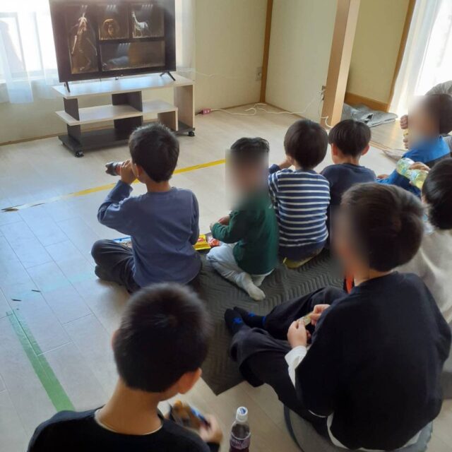 後編の前には、おやつセットを自分で選ぶ時間を設け、まるで本物の映画館のような雰囲気に。好きなおやつを手にしながら映画を観ることで、子どもたちのワクワク感もさらに高まっていました。