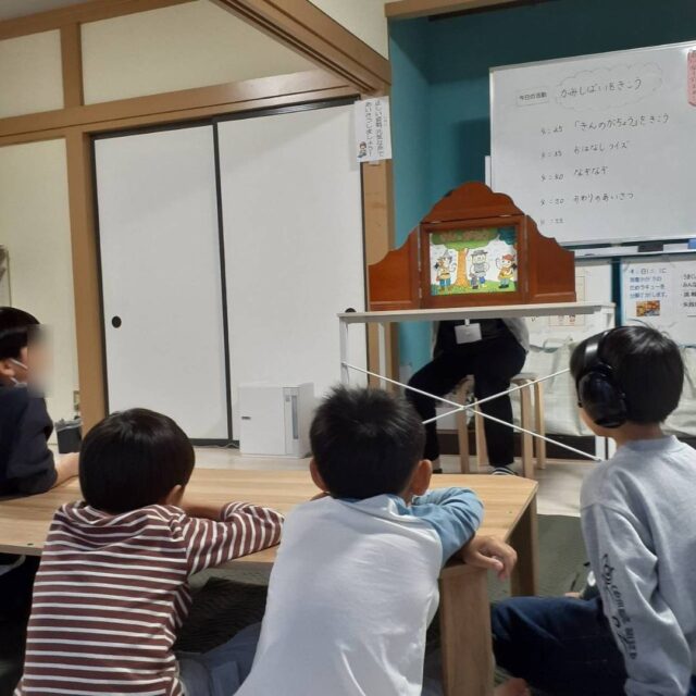 読み終わった後には、職員が紙芝居にまつわるクイズを出し、子どもたちは「覚えてる!」「わかった!」と元気に答えて盛り上がりました。物語を振り返りながら楽しむことで、集中して聞いた内容を確認でき、達成感や満足感も味わえたようです。